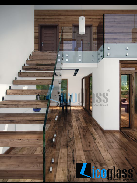Cầu thang gỗ kính cao cấp
