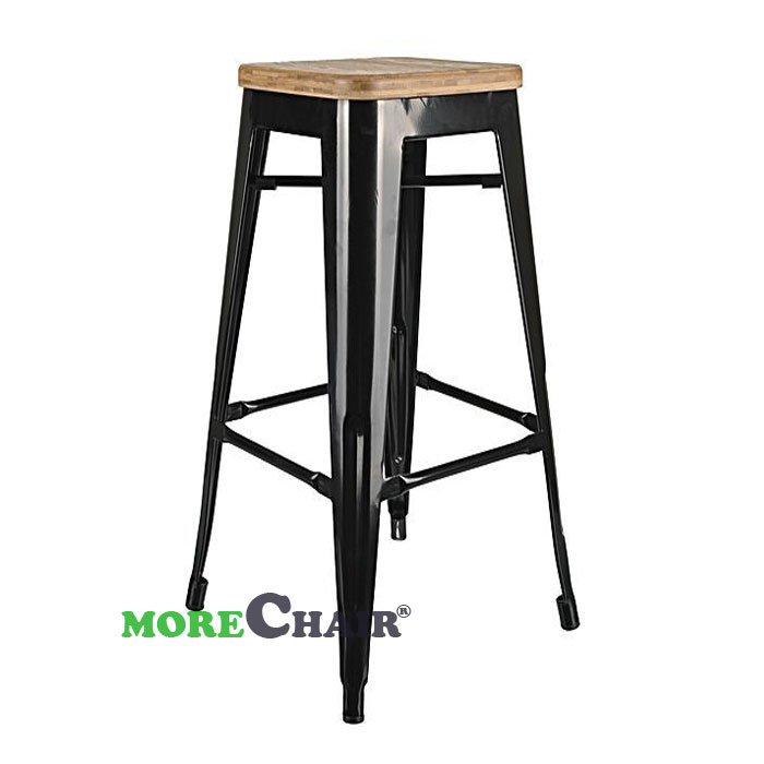 Ghế bar Tolix không tựa mặt gỗ TL-09 màu đen, sản phẩm ghế công nghiệp cao cấp phù hợp với nhà hàng, quán bar, quán cafe.